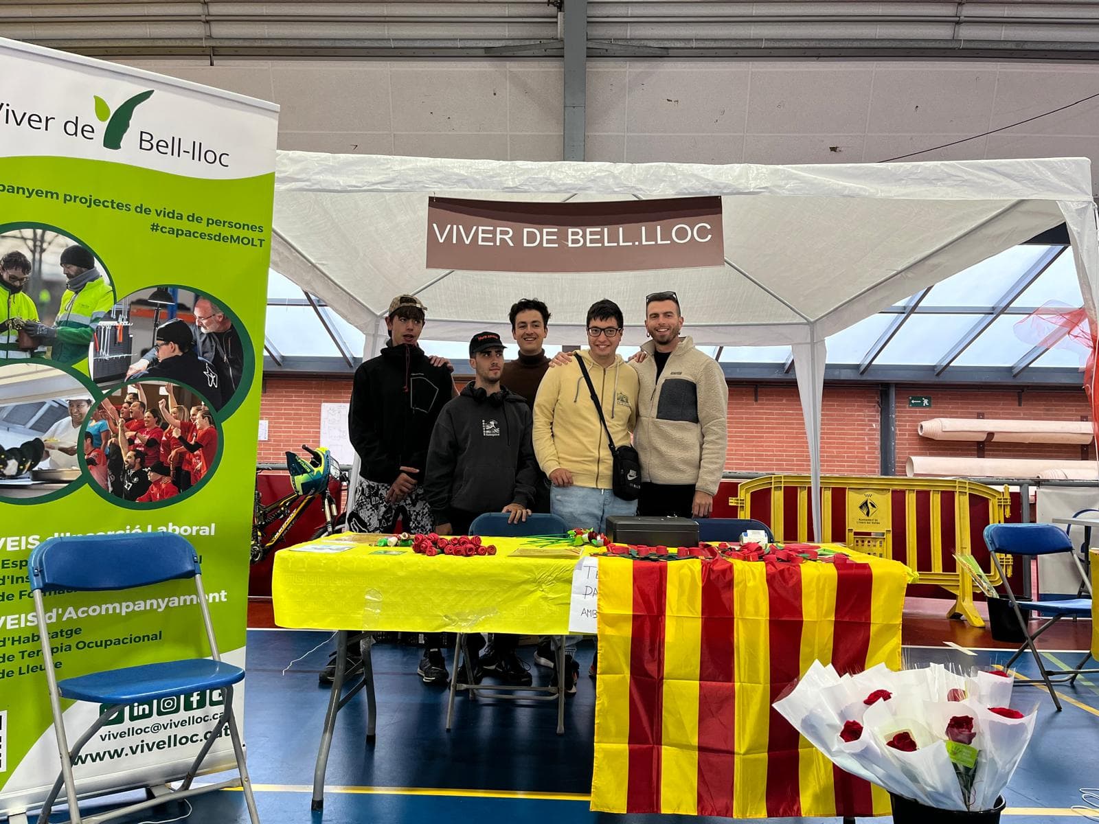 I a Cardedeu van ser les usuàries del Servei Ocupacional d’Inserció les encarregades de muntar el seu espai. Amb tota la il·lusió, van presentar una relació de productes idonis per la diada: punts de llibre personalitzats, roses, penjolls i clauers, creats amb cura al Centre Ocupacional l’Esqueix (Cardedeu), que al llarg de tot el dia va anar adquirint tothom qui s’hi acostava per conèixer la tasca de Viver de Bell-lloc.